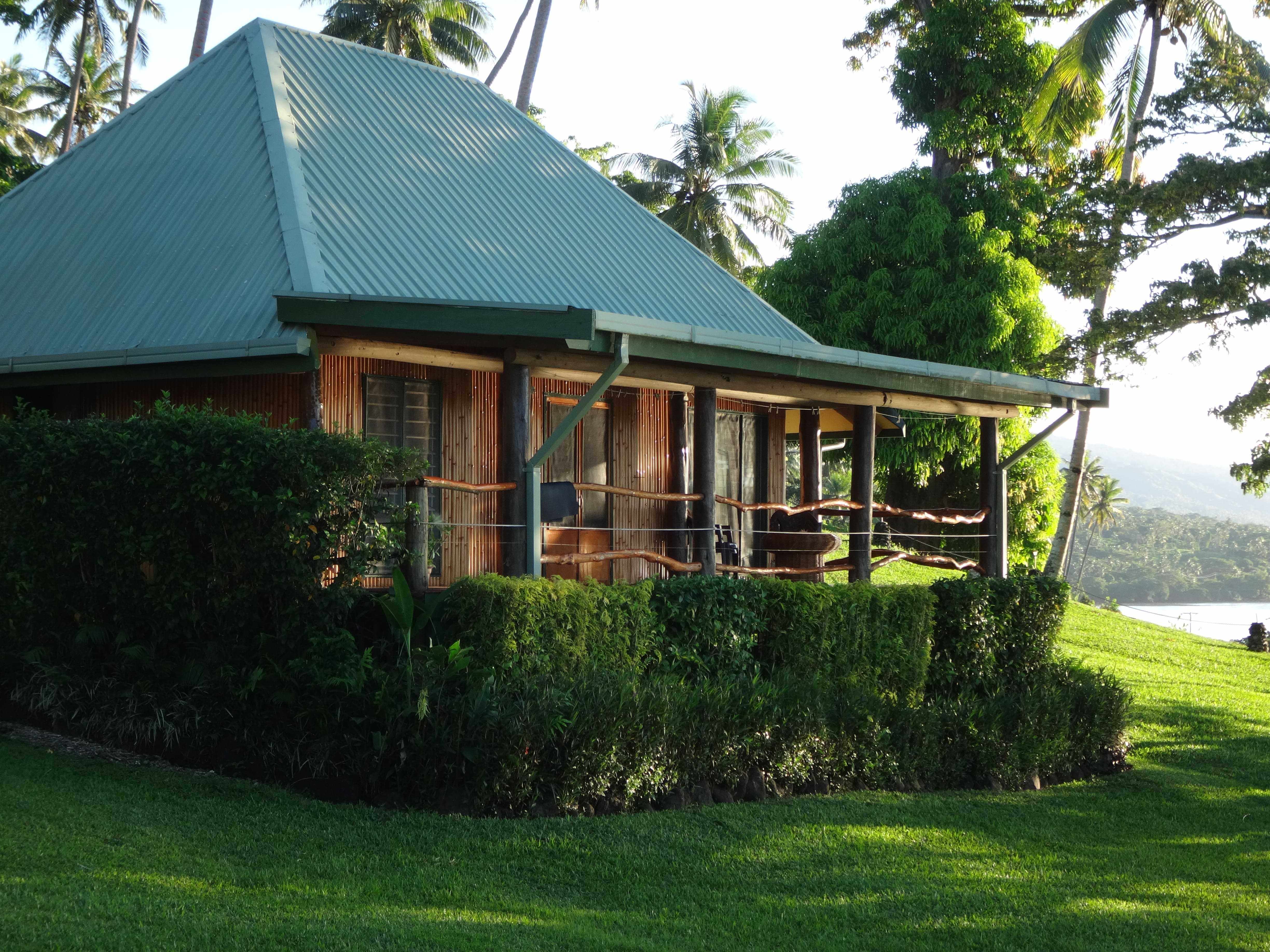 Set apart from the guest area, but also on freehold land purchased by the Kellys, is their 165-square meter (1800-square foot) 2-bedroom/2-bath home. The Kellys reside in this home, but it could be rented at a market price of US$600 – 700 per night plus tax. On an adjacent eight-acre parcel, leased from the iTaukei Land Trust Board (TLTB), the NGO responsible for leasing communally-owned native land, are: